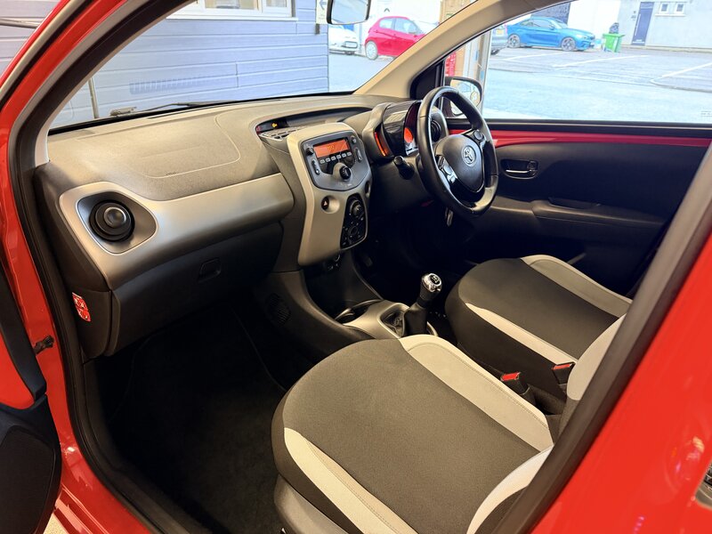 Introducing the vibrant 2018 Toyota Aygo 1.0 AYGO X-play VVT-i 5-door hatchback, a perfect blend of style, efficiency, and practicality for urban drivers. This dynamic little car, finished in a striking red, boasts a manual transmission and is powered by a zippy 1.0L engine, ensuring an exhilarating driving experience while maintaining excellent fuel economy. With just 31,600 miles on the clock, this used vehicle promises reliability and longevity, making it an ideal choice for both first-time buyers and those looking to downsize.Designed with five doors for effortless access, the Aygo is equally suited for zipping through city streets or embarking on weekend adventures. The car has been kept in good condition, showing only signs of normal wear and tear, making it a sensible option for budget-conscious drivers. With road tax at an affordable rate and a comprehensive service history, you can drive with peace of mind knowing that this Aygo has been well cared for. Supplied with two keys, this Toyota Aygo is ready for its next journey, whether that’s around town or further afield. Don't miss the chance to own this compact, stylish hatchback that’s perfect for modern life.
